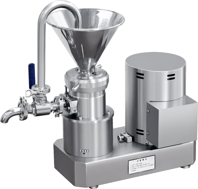 Colloid mill is driven by the motor through a belt transfer drive gear (or rotor) and the fixed mating teeth (or stator) for relatively high speed rotation, in which a high-speed rotation, and the other is stationary, the material to be processed by its own weight or external pressure (which may be generated by the pump) to generate a downward spiral pressure impact, by setting the strong shearing gap, transfer between the teeth (adjustable gap), through the friction, high-frequency vibration, high-speed vortex and other physical effects, so that the material is effectively emulsified and dispersed and homogeneous grinding and fine grinding of materials to achieve the effect emulsification. Room with three broken ground area, coarse ground level area, two fine grinding zone, three for the ultrafine grinding zone by adjusting the gap between the rotor and can compact operation, with a smooth, low noise, corrosion-resistant, easy to clean, easy maintenance and so on. Now is the ideal equipment for wet grinding